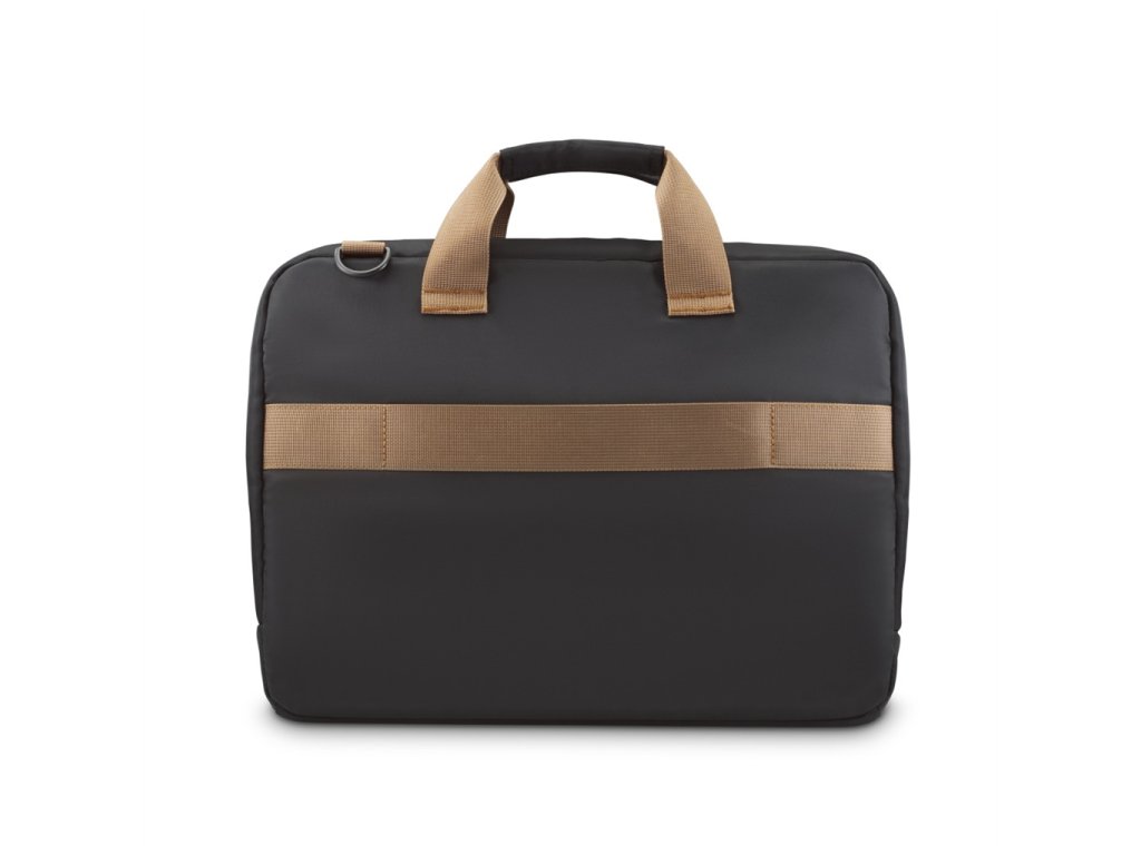 - ekologicky uvedomelá klasika vo funkčnom biznis štýle - mimoriadne ľahká taška, ktorá spoľahlivo ochráni notebook - taška na notebook s uhlopriečkou 40-41 cm (15,6"-16,2") - pre bezpečné prenášanie/uloženie a ochranu pred poškodením, poškriabaním či znečistením - vnútorná a vonkajšia látka je vyrobená zo 100% recyklovaných PET - hrubo polstrovaný priečinok na notebook - na prednej strane vrecko na zips pre rôzne drobnosti ako mobil, pero, kábel a pod. - vo vnútri priečinky a vrecká pre rôzne príslušenstvo a drobnosti ako perá, USB kľúč, pamäťové karty, kľúče, vreckovky a pod. - gumené nožičky na spodnej strane pre lepšiu stabilitu a ochranu pred vlhkosťou pri postavení na zem - materiál odpudzujúci vodu pre ochranu pred vlhkom a odolný voči nečistotám a poškriabaniu - odnímateľný, dĺžkovo nastaviteľný popruh na rameno s polstrovaním - popruh na zadnej strane tašky, možnosť upevnenia na rukoväť kufra - rukoväte s textilnou časťou pre pohodlné prenášanie v ruke - zapínanie hlavného priečinku na 2-smerný krytý zips - vonkajšie rozmery (Š x H x V): 44 x 9 x 32 cm - vnútorné rozmery (Š x H x V): 41 x 8 x 31 cm - objem: 10 l - hmotnosť: 440 g - materiál: recyklovaný polyester (R-PET) - farba: čierna/karamelová - papier, ktorý je súčasťou obalu má certifikát pôvodu dreva Obsah balenia: - 1 taška na notebook Ultra Lightweight - 1 popruh na ramenoDodatočné parametre