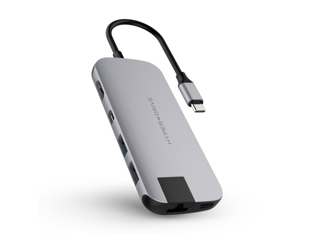 HyperDrive SLIM USB-C je najtenší a najkompaktnejší USB-C húb 8v1 na svete. Ľahko ho pripojíte k akémukoľvek počítaču alebo MacBooku pomocou vstavaného USB-C kábla. V praxi môžete využiť priechodný napájací USB-C port, vyklápací Gigabit Ethernet, SD, microSD, 4K HDMI, 4K Mini DisplayPort(Mini Display Port nepodporuje pripojenie pre Thunderbolt Display a Hard Disk) a 2x USB 3.1.Vďaka kompaktným rozmerom zaberie húb naozaj minimálne miesto vo vašej taške, takže ho môžete nosiť neustále so sebou. Pri použití oceníte aj hliníkové telo a flexibilný USB-C kábel, ktorý sa prispôsobí vášmu použitiu. Premeňte svoj MacBook na výkonnú pracovnú stanicu.