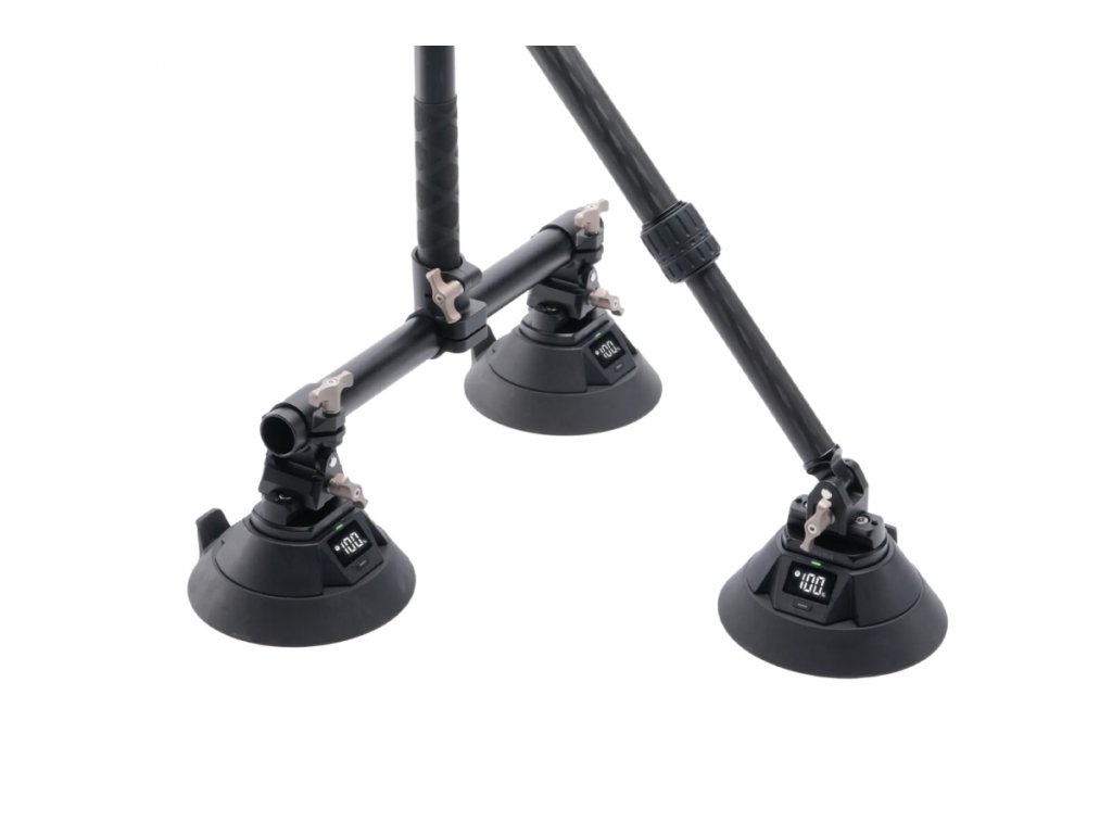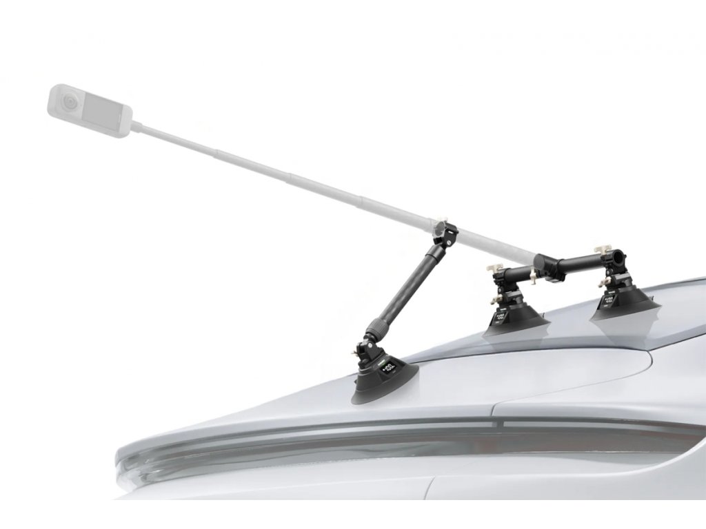 Elektrické prísavky zaisťujú konštantný podtlak a tým i spoľahlivú fixáciu počas celej doby natáčania. Držiak je vhodný pre upevnenie na karosériu, sklo alebo iné hladké povrchy, čo umožňuje zachytiť unikátne zábery z rôznych uhlov – od nízkych dynamických pohľadov až po široké scenérie počas jazdy.