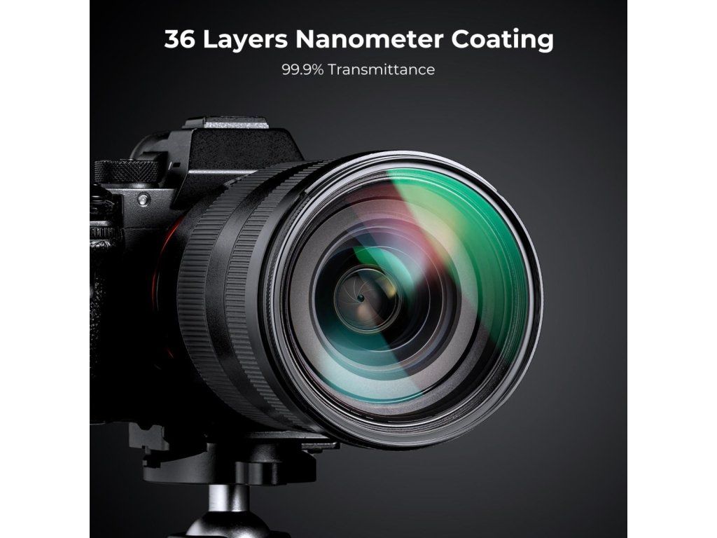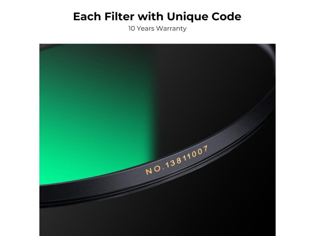 Filter je vylepšený obojstranným 36-vrstvovým nanopovlakom, vďaka čomu je vodeodolný, odolný voči zašpineniu a poškriabaniu, čo zaisťuje dlhotrvajúcu životnosť pri vonkajšom použití. Každý filter sa dodáva s ručne vyrobeným puzdrom z pravej kože a je registrovaný s jedinečným identifikačným kódom, na ktorý sa vzťahuje 10-ročná záruka.