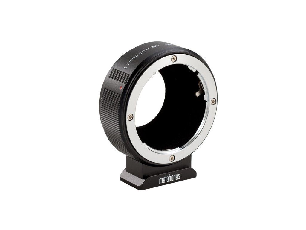 Adaptér Metabones Olympus OM na Micro Four Thirds-Mount T II je precízne vyrobený mechanický adaptér, ktorý umožňuje montáž objektívov Olympus OM na fotoaparáty Micro Four Thirds. Je vyrobený z odolného hliníka a mosadze so saténovo chrómovou povrchovou úpravou, má vnútro s vláknitým povrchom pre zníženie odrazov a gumené tesnenie pre ochranu pred prachom a vlhkosťou. Obsahuje odnímateľnú statívovú pätku typu Arca pre všestranné upevnenie, hoci nepodporuje automatické zaostrovanie ani elektronické ovládanie clony.