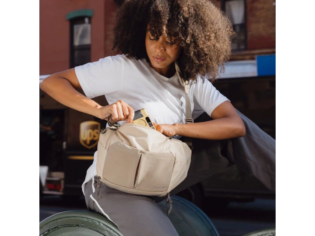 Avýraznývrecko na zips cez ramenopremení hlavný popruh tašky naafunkčnýpolstrovaný systém vreciek, čo vám poskytne okamžitý prístup k nevyhnutným veciam, ako je telefón, filtre, peňaženka alebo AirPods. Taška je dostatočne priestranná pre fotoaparát plnej veľkosti s teleobjektívom a tablet, no zároveň dostatočne malá, aby ste držali krok so zvyškom svojho tímu.