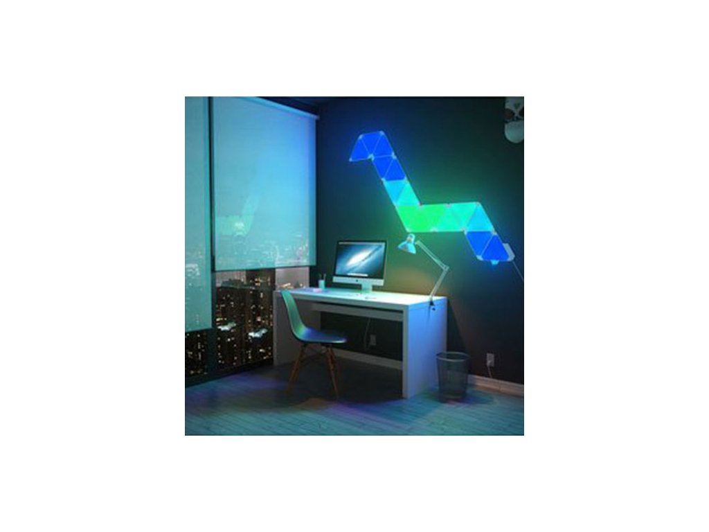 Modulové inteligentné osvetlenie – sada 15 kusov panelov + modul Rhythm - buďte kreatívny a vytvorte si vlastný dizajn vďaka modulovo skladanému osvetleniu - použiteľné ako dizajnový prvok, nočné osvetlenie, svetielko pre deti a pod. - svietivosť dostatočná na vytvorenie denného svetla v zatemnenej miestnosti - jedinečný modul Rhythm dokáže synchronizovať hudbu s osvetlením pre nezabudnuteľný zážitok - plná škála 16,7 miliónov farieb (RGBW) a mnoho farebných efektov - módy pre navodenie správnej atmosféry s možnosťou automatického nastavenia - neobmedzené možnosti dizajnu a efektov pridaním ďalších panelov (až do 30 ks v rámci jedného objektu) - po pridaní nového panelu ihneď vidíte v inteligentnej aplikácií aktuálny tvar zostavy a viete nastaviť zodpovedajúce efekty - hlasové ovládanie, kompatibilné s Apple HomeKit a Amazon Alexa - ovládanie pomocou aplikácie Nanoleaf pre iOS a Android alebo pomocou špeciálneho diaľkového ovládania s gyroskopom a akcelerometrom (nie je súčasťou balenia) - jednoduché ovládanie aj bez aplikácie priamo na vstupnom paneli - komunikácia pomocou Wifi (2,4 GHz b/g) - sada je kompletná a pripravená na použitie Technické parametre: - svietivosť: 100 Lm - teplota farieb: 1200 K – 6500 K - výkon: 2W (1 panel) – 30 W (1 objekt, max. 30 panelov) - CRI: 80 - faktor výkonu: 0,7 - napätie: 100 – 240 V - životnosť: 25 000 hodín Kompatibilita: - iOS 8 a vyšší - Android 5.01 a vyšší Rozmer: 250 x 250 x 250 mm (1 panel) Hmotnosť: 210 g (1 panel)Dodatočné parametre