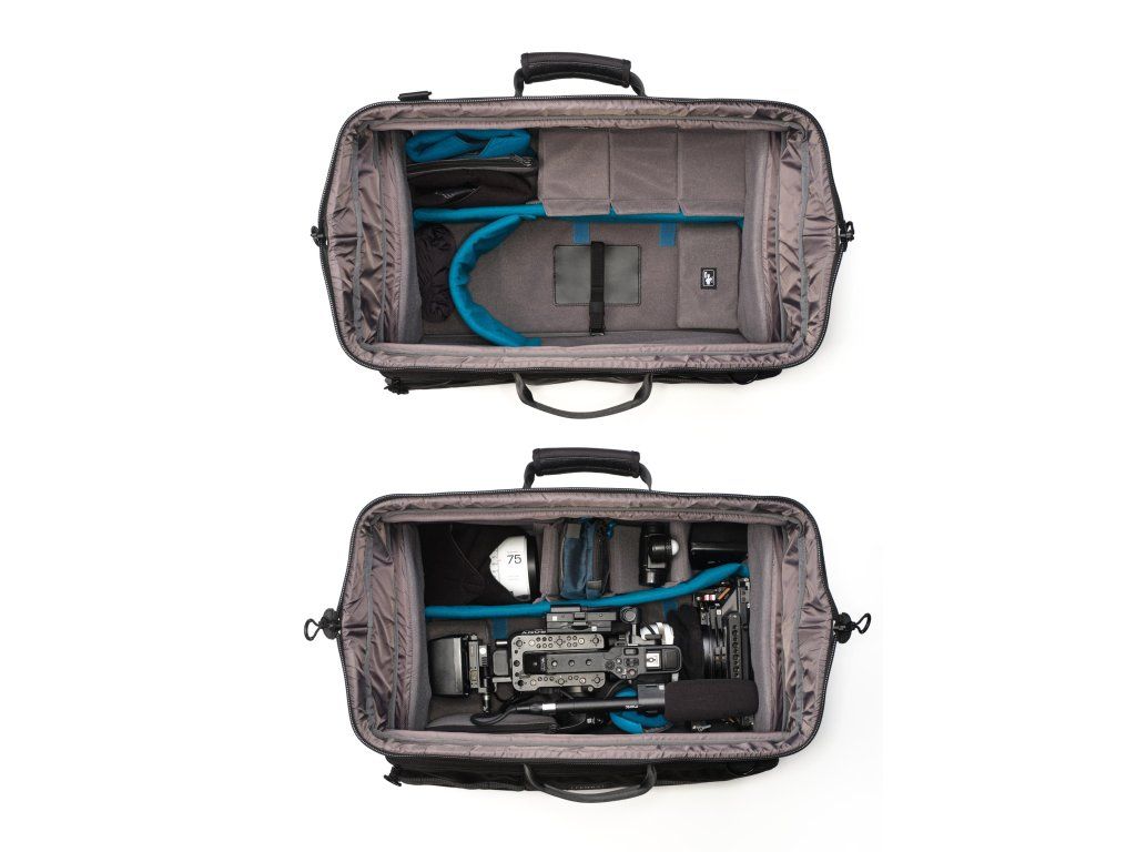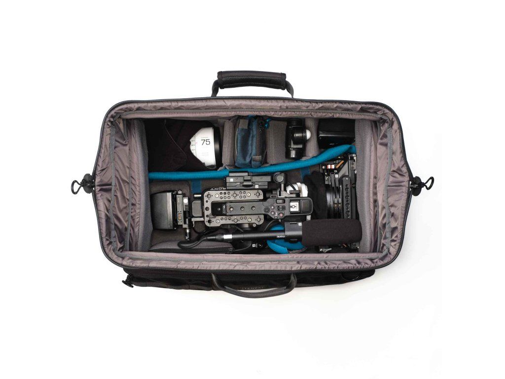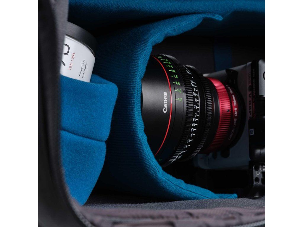 - Priestranný interiér: Vnútro je dostatočne veľké na to, aby poňalo profesionálne videokamery a fotoaparáty s nasadeným príslušenstvom a objektívmi.