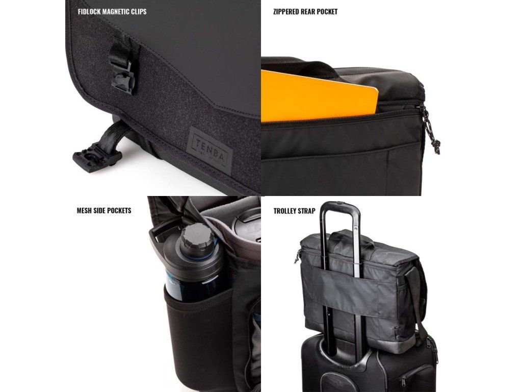 Exkluzívna uzatváracia chlopňa Whisper Hook od spoločnosti Tenba sa dá otvoriť takmer ticho potiahnutím chlopne priamo nadol pred vytiahnutím z tašky. Kapacita vybavenia pre fotoaparát/notebook/tablet: Vhodná pre bezzrkadlovku alebo digitálnu zrkadlovku so 4 – 6 objektívmi (do 70 – 200 mm 2,8) plus blesk a príslušenstvo, spolu s notebookom do uhlopriečky 16 palcov (40 cm) a tabletom do uhlopriečky 11 palcov (28 cm), ako napríklad Apple® iPad® 11 Pro. Rýchly prístup k hornému zipsu: Bezpečne vymieňajte fotoaparáty a objektívy bez otvárania prednej chlopne, pričom obsah tašky zostane skrytý. Vodotesná základňa: Spodná časť s TPU potiahnutím a utesnenými švami je úplne vodotesná na spodných 1,5 palca (3,8 cm) tašky, takže tašku môžete bezpečne položiť na akýkoľvek mokrý povrch, a to aj na dlhší čas. Odnímateľná polstrovaná vložka pre fotoaparát: Vysunie sa a taška sa použije na všeobecné použitie, nie na fotografovanie. Neovplyvňuje zadné puzdro, takže tašku je možné stále používať na nosenie notebooku a tabletu, aj keď je polstrovaná vložka odstránená. Taška DNA 16 Slim Messenger sa zmestí na bezzrkadlovku alebo digitálnu zrkadlovku so 4-6 objektívmi (do 70-200 mm 2,8) plus blesk a príslušenstvo, spolu s notebookom do 40 cm a tabletom do 28 cm, ako napríklad iPad 11 Pro. Bola vytvorená pre plynulý prechod medzi fotožurnalistikou a športovou fotografiou, objavovaním miest a dobrodružným cestovaním a všetkými predstaviteľnými druhmi spoločenských udalostí. Ak niekedy existovala „jedna taška, ktorá by vládla všetkým“, je to táto. Taška DNA Messenger je často napodobňovaná, nikdy nie duplikovaná a vždy pripravená na prácu. Je vybavená horným zipsom Quick Access, švom utesneným a úplne vodeodolným dnom, charakteristickým tichým zapínaním Whisper-Hook od značky Tenba a odnímateľnou vložkou na fotoaparát. ŠPECIFIKÁCIE Hmotnosť: 2,7 libry / 1,22 kg Vonkajšie rozmery (v palcoch): 15,75 Š x 12 V x 5,5 H v palcoch Vonkajšie rozmery (cm): 40 Š x 30 V x 14 H v cm Vnútorné rozmery (v palcoch): 14,75 Š x 11,5 V x 4 H v palcoch Vnútorné rozmery (cm): 37 Š x 29 V x 10 H v cm Rozmery priehradky na notebook (v palcoch): 14,75 Š x 10 V x 1 H v palcoch Rozmery priehradky na notebook (cm): 37 Š x 25 V x 3 H v cm Kapacita: Bezzrkadlovka alebo digitálna zrkadlovka so 4 – 6 objektívmi (do 70 – 200 mm 2,8).Dodatočné parametre
