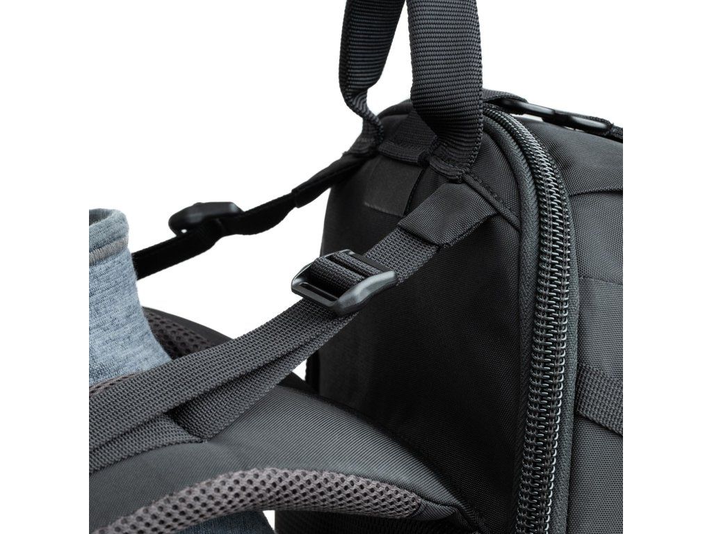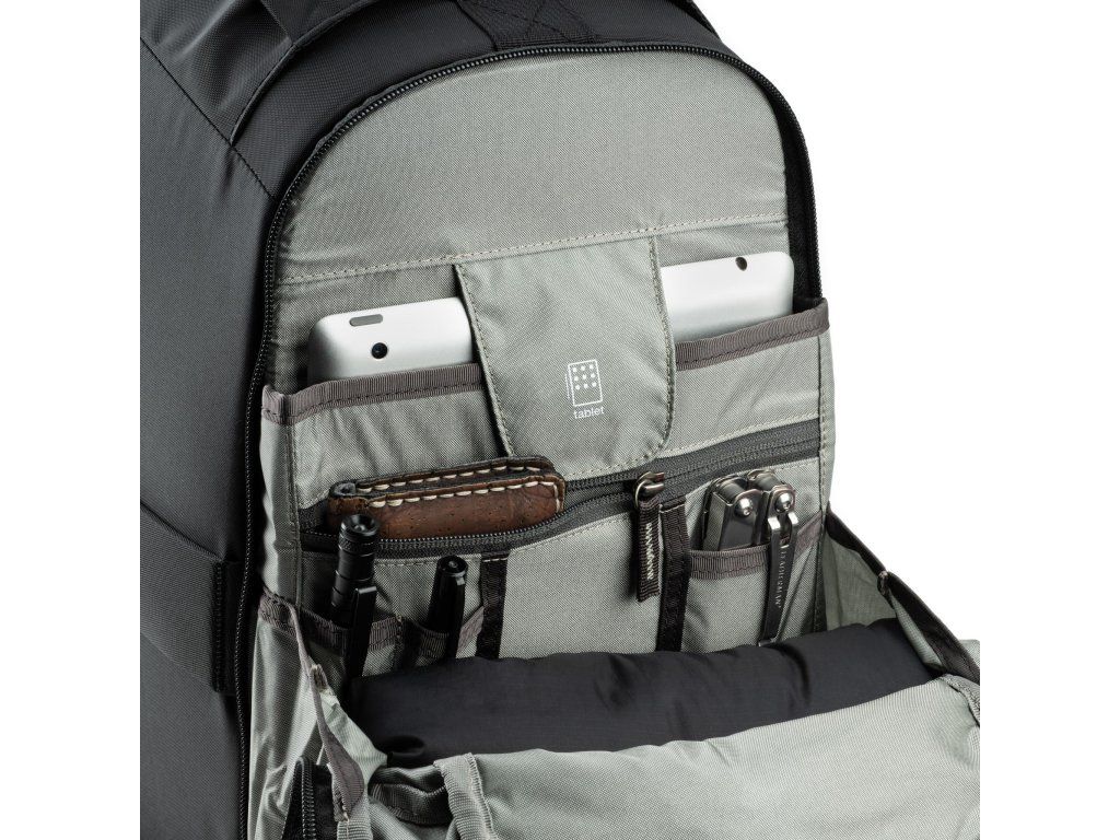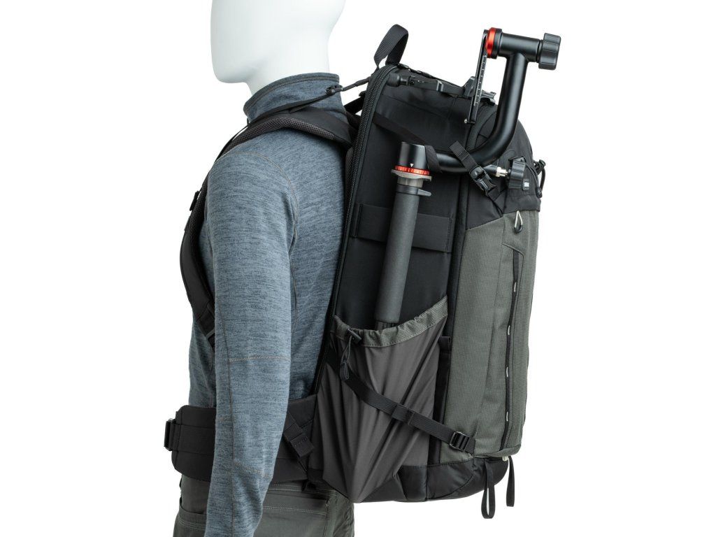 - Praktické detaily – bočné vrecká na fľašu, upevňovacie pásy na statív, priestory pre príslušenstvo a drobnosti.