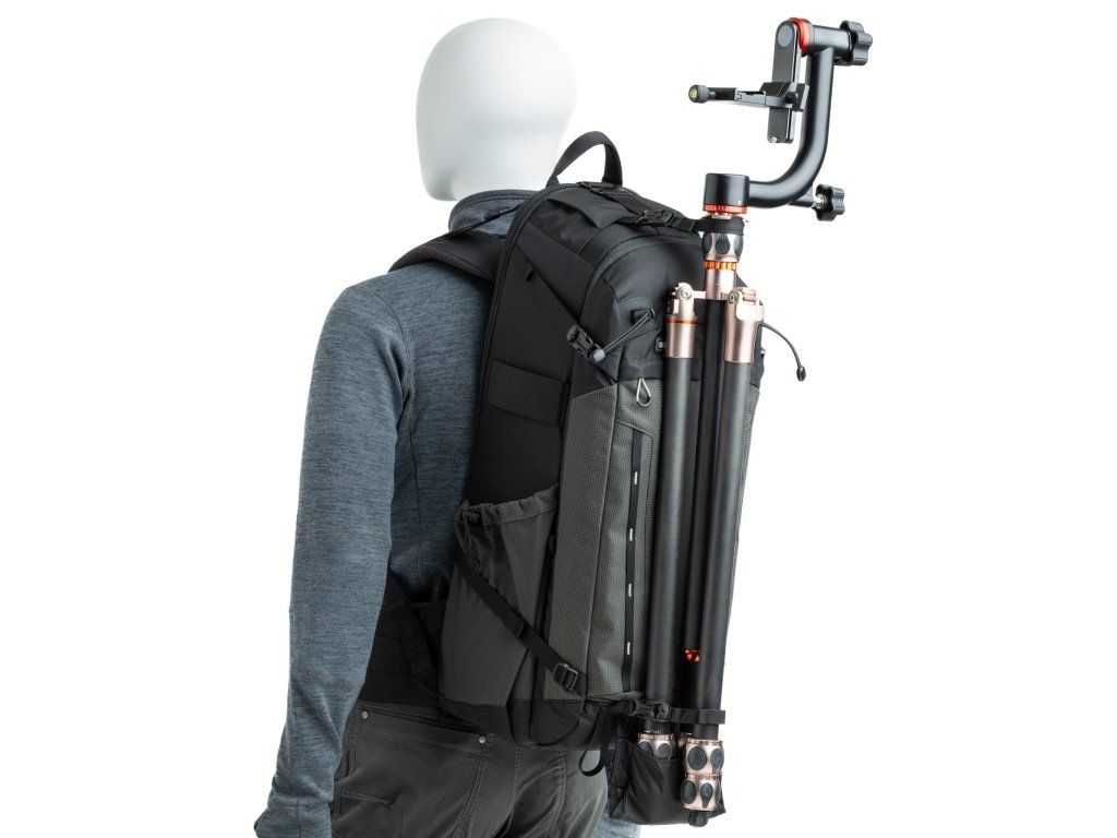 - Konstrukcia pre dlhé objektívy – pojme DSLR alebo mirrorless telo s objektívom až do veľkosti 600mm f/4 nasadeným alebo 800mm bez tela.