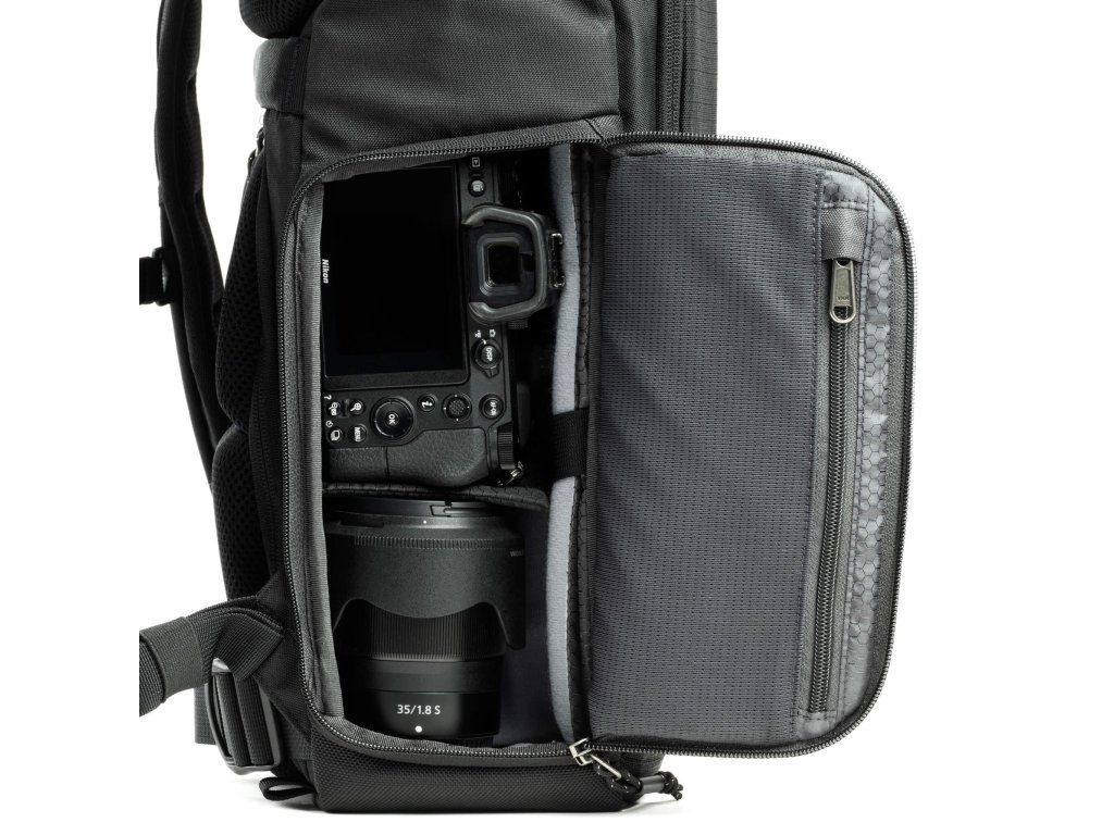 - Priestranný interiér – Kapacita 30 litrov ponúka dostatok miesta na fotoaparát, objektívy, notebook aj osobné veci.