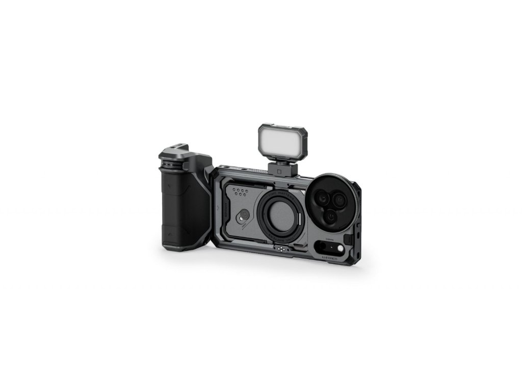 Súprava Tilta Khronos Street Snap Kit pre iPhone 17 Pro Max v prevedení Space Gray je profesionálna mobilná filmová súprava určená pre iPhone 17 Pro a Pro Max. Obsahuje rýchloupínaciu ochrannú klietku, PD rukoväť ovládanú cez Bluetooth s integrovanou batériou, mini LED panel vyvážený podľa denného svetla a magnetický 58 mm polarizačný filter v kombinácii s difúznym filtrom čiernej hmly pre vylepšené farby a redukciu odleskov.