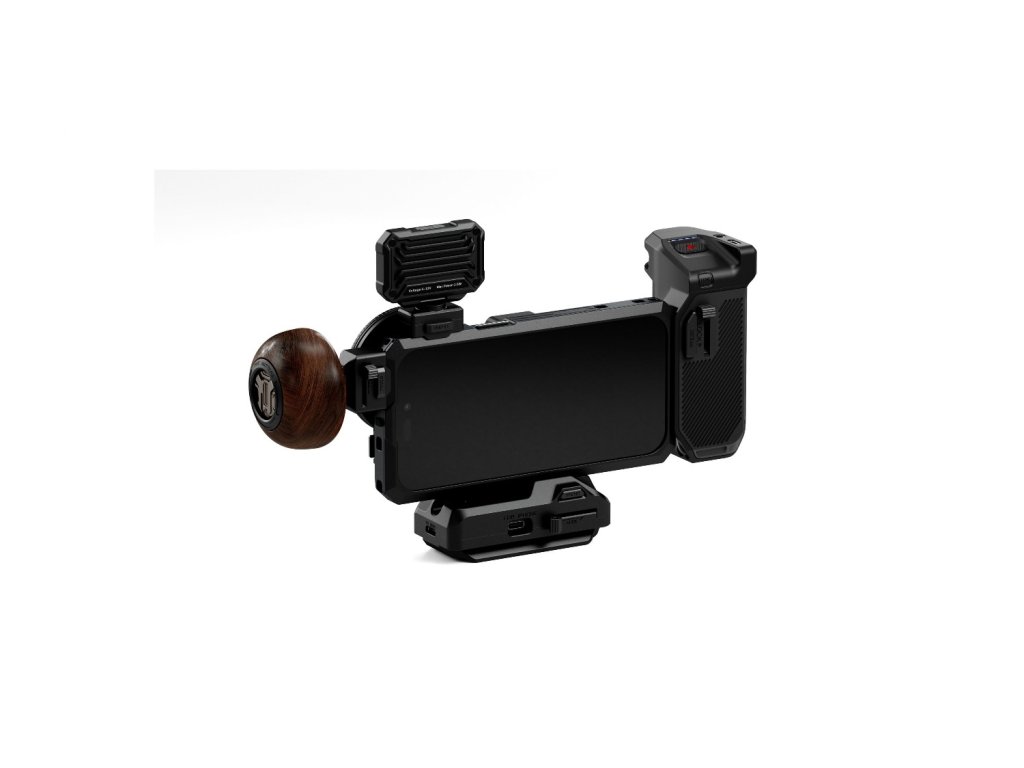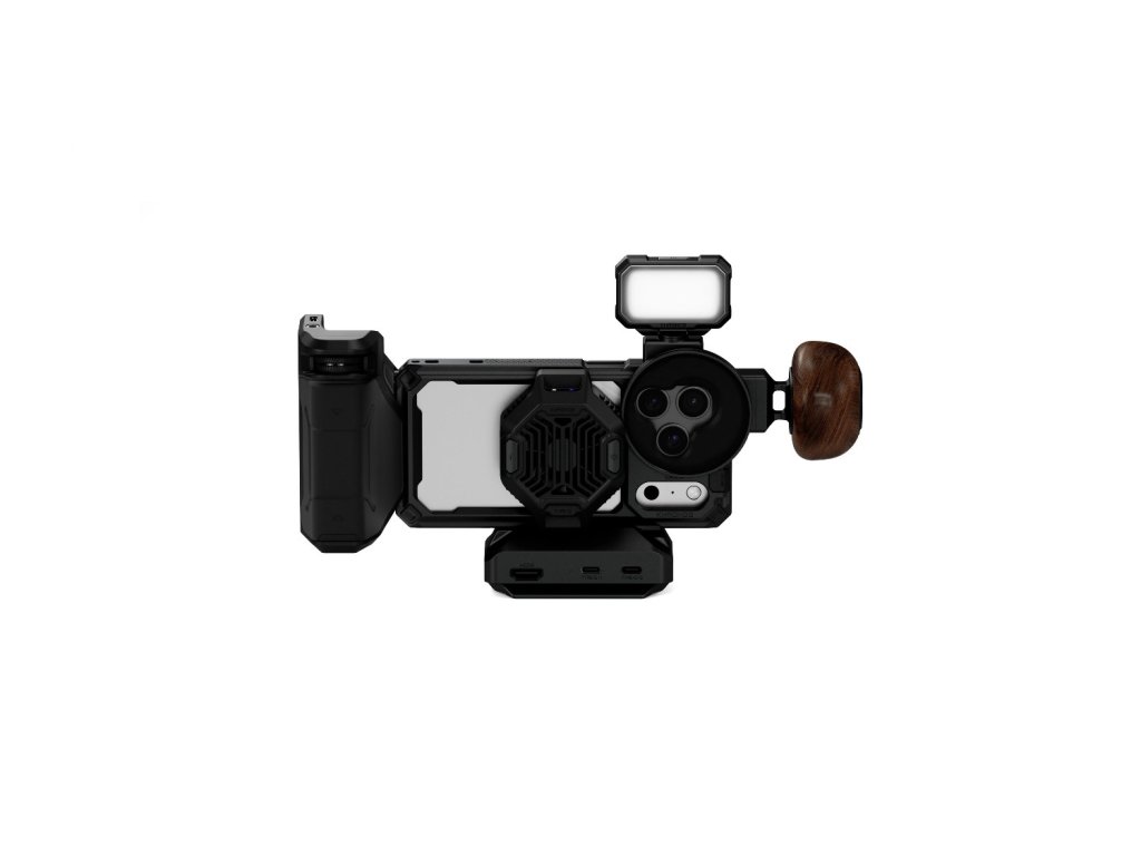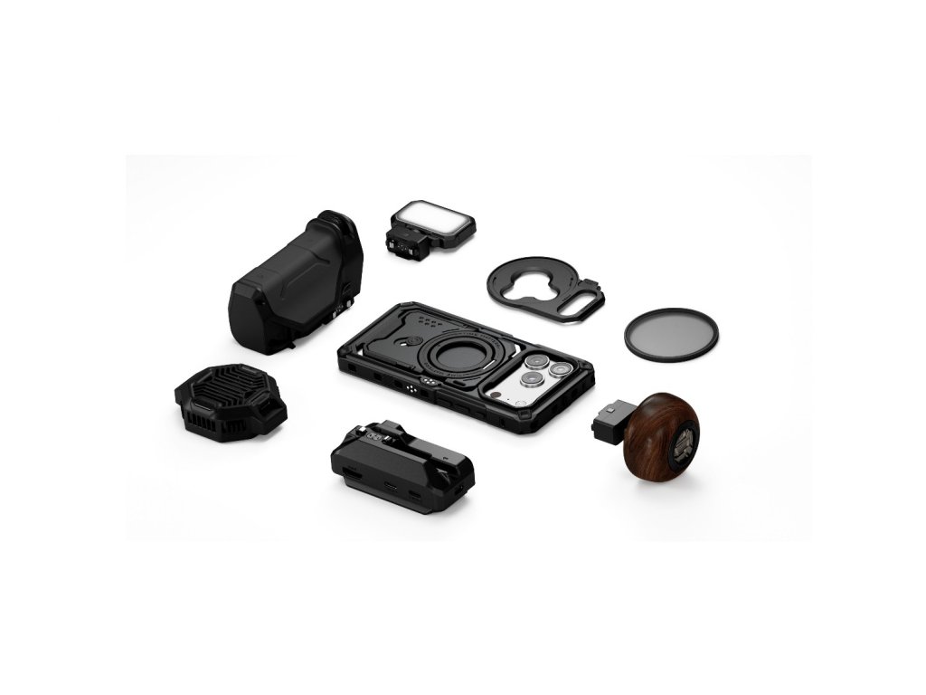 Súprava Tilta Khronos Ultimate Kit vBlackje komplexné, profesionálne filmové zariadenie navrhnuté na mieru preiPhone 17 Pro MaxTento systém typu „všetko v jednom“ obsahujeRukoväť Focus PDs integrovaným napájaním, aRozbočovač USB-Cs HDMI a ARCA doskou, výkonný22W chladiaci modula a 58 mm variabilný ND filterpre dokonalú mobilnú kontrolu výroby.