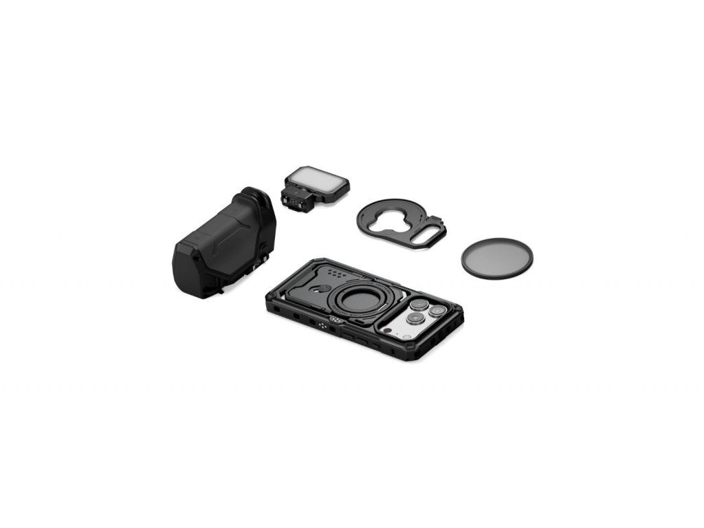 Súprava Tilta Khronos Street Snap Kit pre iPhone 17 Pro v čiernej farbe je profesionálna mobilná filmová súprava určená pre iPhone 17 Pro. Obsahuje rukoväť Focus PD ovládanú cez Bluetooth s integrovanou batériou, mini LED panel s denným svetlom a nastaviteľným jasom a magnetický 58 mm polarizačný filter s difúznym filtrom čiernej hmly, všetko zabudované do ochranného systému s rýchloupínacou klietkou.