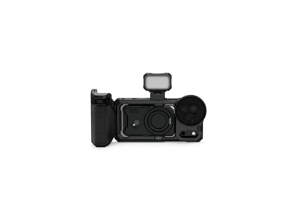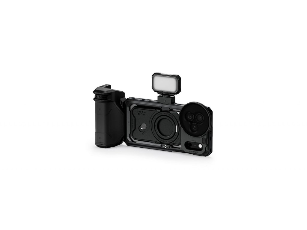 Súprava Tilta Khronos pre iPhone 17 Pro Max Street Snap Kit v čiernej farbe je mobilná súprava na natáčanie filmov určená pre iPhone 17 Pro a Pro Max. Obsahuje páku zaostrovania PD s integrovanou batériou a ovládaním cez Bluetooth, mini LED panel s nastaviteľným jasom a magnetický 58 mm polarizačný filter s difúznym filtrom čiernej hmly na zníženie odleskov a zvýraznenie farieb, to všetko zabudované do ochranného systému s rýchloupínacou klietkou.